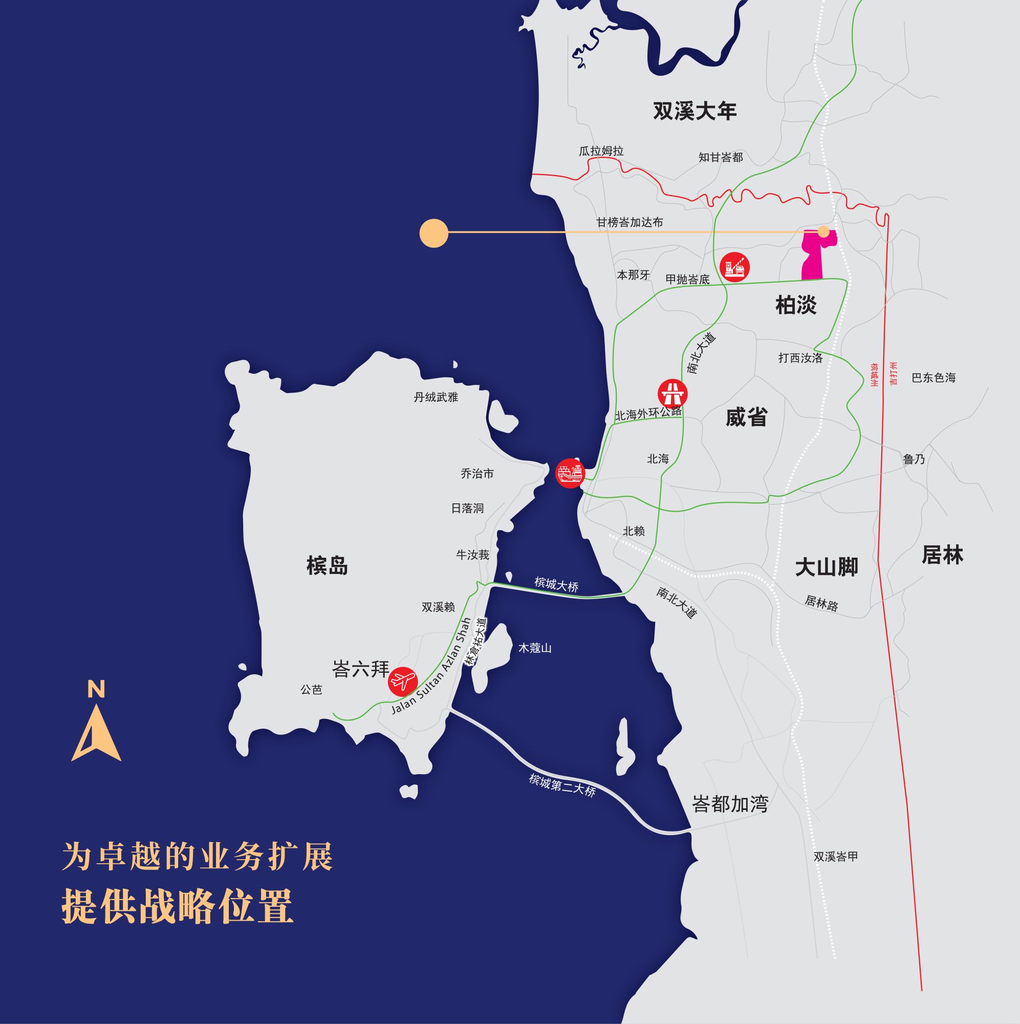 • East connectivity to the rest of the world via Penang Port (23km) & Penang International Airport (42km)