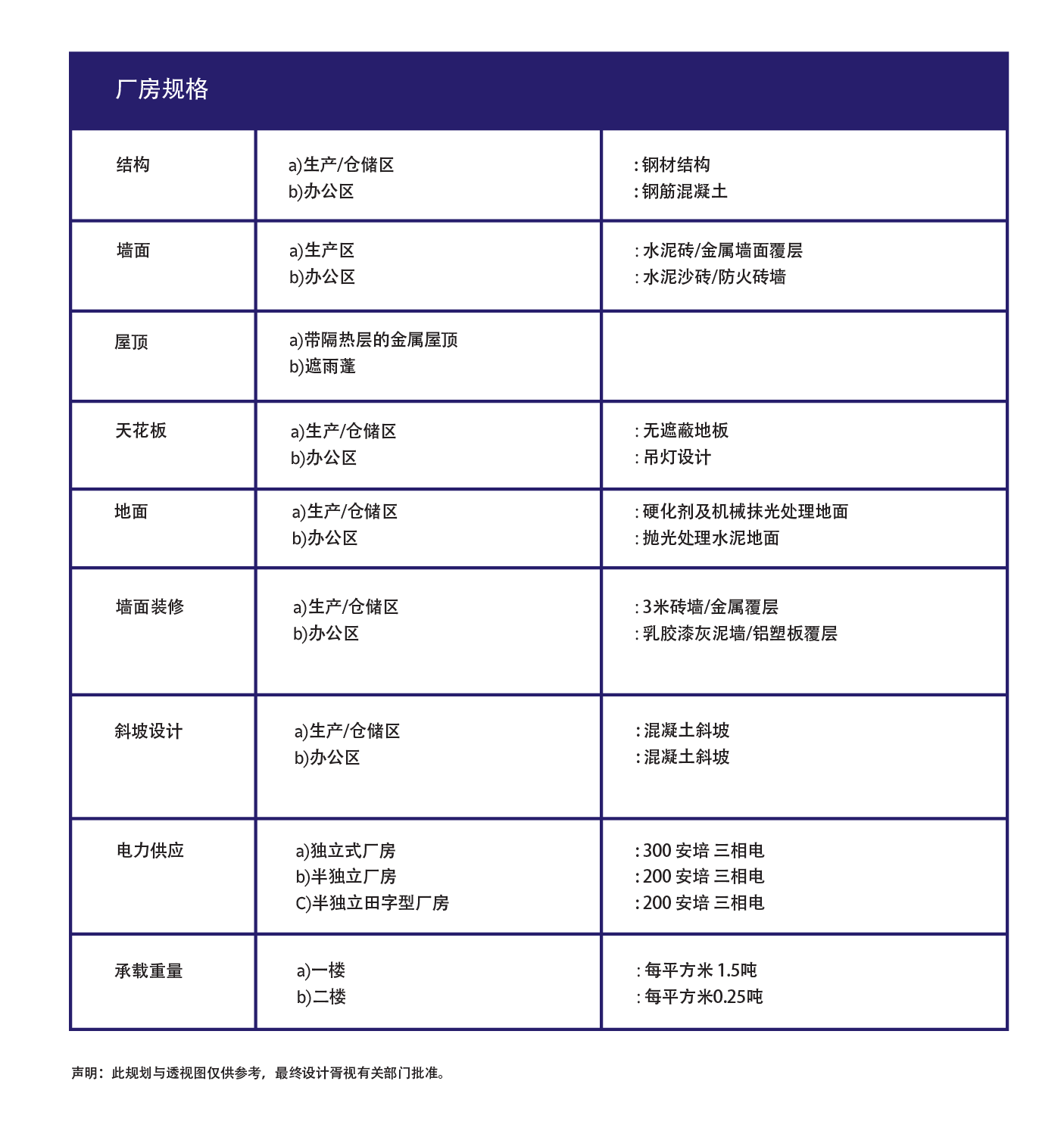 • 全面覆盖的基础设施,包括道路网络、电力、水供、排水、通讯设施、天然气、工业气体服务,甚至是先进安防设施。