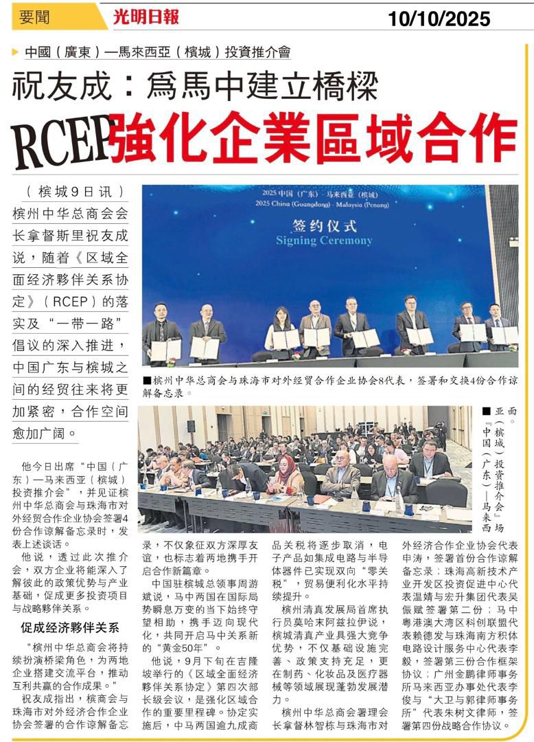 宏升集团与珠海高新技术产业开发区签署谅解备忘录